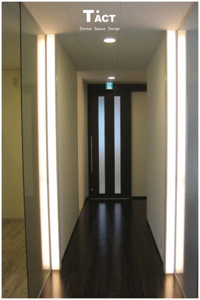 全体的に縦型の間接照明を施した雰囲気作り。